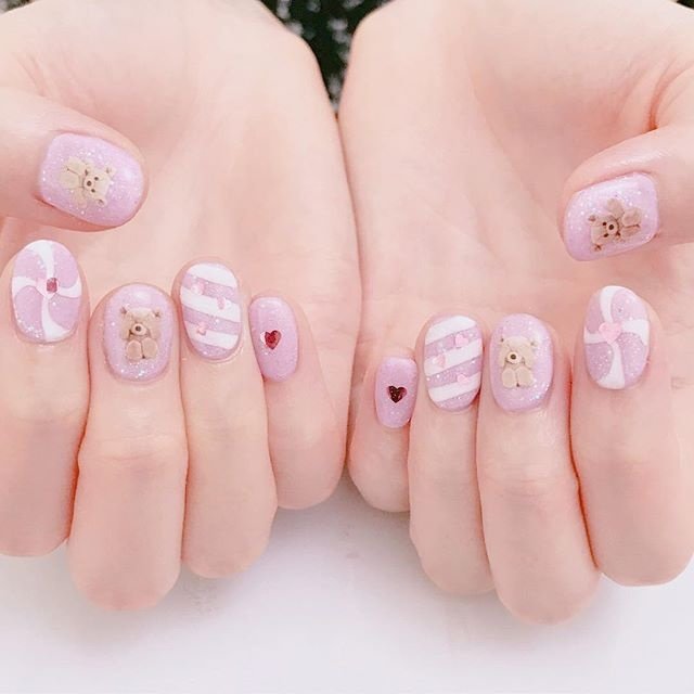 最近人気のストライプネイル くまアイスのラブリーデザイン 担当 守屋 Rich8 Moriya Rich8 リッチエイト 原宿 竹下通り 表参道 原宿ネイルサロン 原宿マツエク 原宿まつ毛パーマ ネイルサロン アイラッシュサロン マツエク まつ毛パーマ